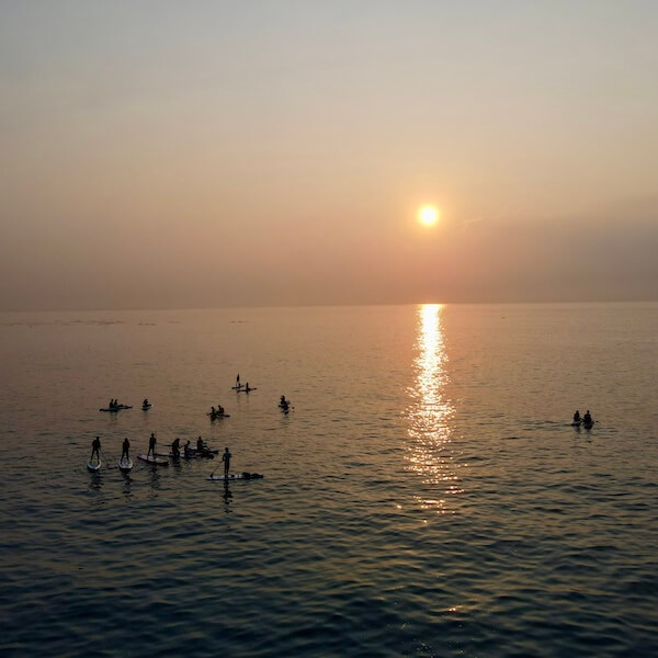 跟一群 SUP 玩家一起走向大海,感受清晨海氣。 -