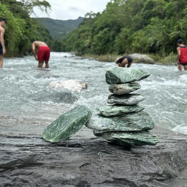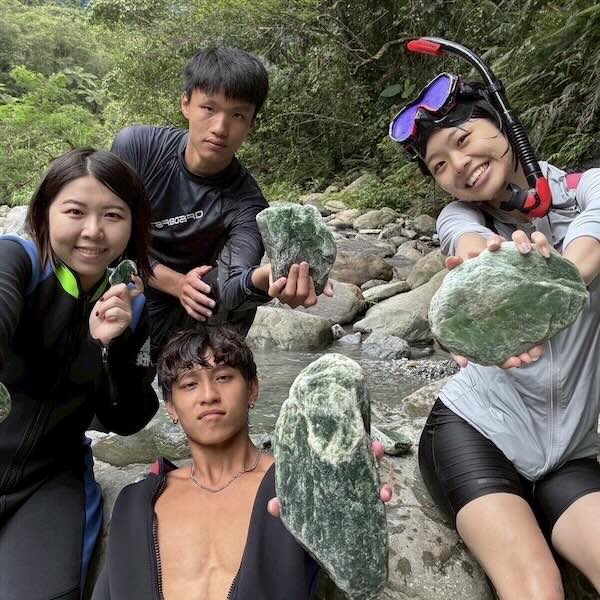 戴上我們準備的面鏡,跟著教練潛入清澈的溪水中,翻開石頭,「尋找」傳說中的綠色寶石。這不只是一次溯溪,更是一場兼具生態教育與玩水樂趣的「尋玉探險」。